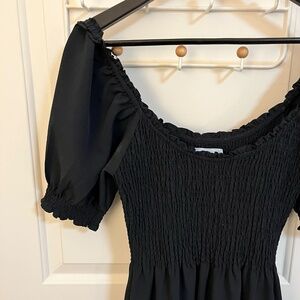 Hill House Louisa Nap Dress in XS. Smocked bodice, scoop neck, puffy sleeves. True black.