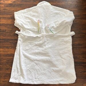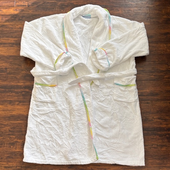 EUC unisex style size 2XL/3XL Hill House heavy cotton terry robe with rainbow trim and front slip pockets, tie waist…. Pics 7-8 stock photos for reference
