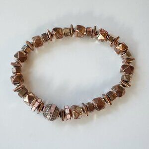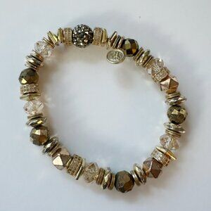 1) Mixed-Metal Crystal & Pyrite-Tone Bracelet