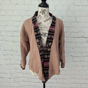 Hilltribe Artsy Boho One Button Jacket S/M S M Linen Tan Brown