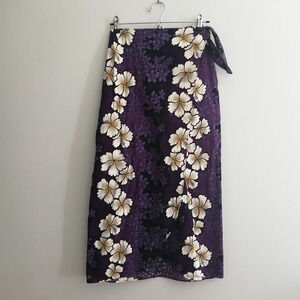 Hilo Hattie Hawaiian Purple Hibiscus Flower Sarong Wrap Skirt Adjustable XS