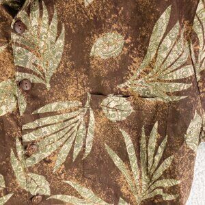 Hilo Hattie Shirt Mens Medium Brown Green Cotton Lawn Tropical Lightweight