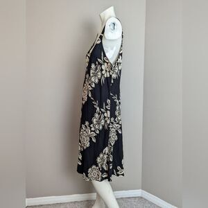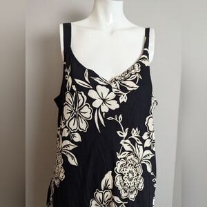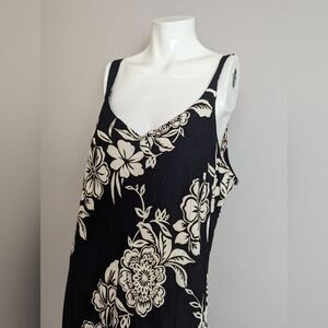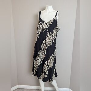 Hilo Hattie Black Floral Hawaiian Sundress Size XL Sleeveless A-Line Luau Resort