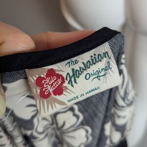 Hilo Hattie classic Hawaiian sundress in a bold black and cream floral print.