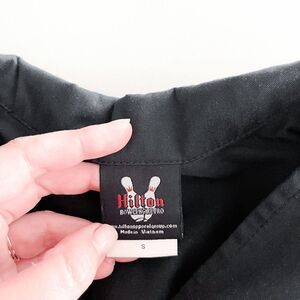 Hilton Bowling Retro Mens Button Down Shirt Short Sleeve Black Gray Stripe Small