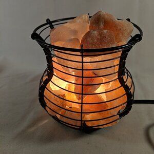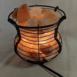 Himalayan Salt Lamp Pink Black Wire Basket Light Accent Lamp Metal Large Big