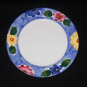 The plate is 11" in diameter and the bowl is 9 3/4" in diameter. Height of stand is 13 1/2" and 14" wide. Very good overall condition without cracks or crazing, but the plate has a small chip as shown in the photo.