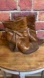 Super sexy, unique, quality and classy boots. Beautiful mix of brown leather and suede toe with a unique designed heel and platform bottom. Definitely a statement piece. Heads will turn! A bohemian western flair with these beauties. Functional zippers at the side for east on and off.