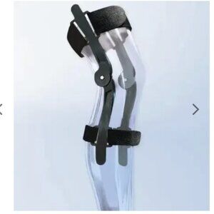Cushiony donut for added protection to your knee cap and stability Splint brace on both side of leg.