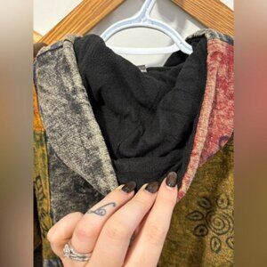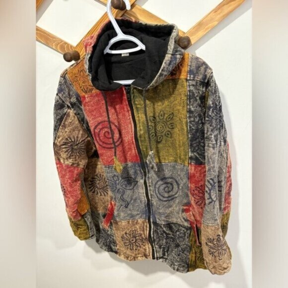 Hippie Boho Vintage Retro Cotton Symbols Fleece Lined Jacket Festival Nepalese