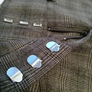 Hippie pants with checks and thin lines in shades of brown and black, original fasteners, and bell bottoms, extensible