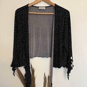 Hiroko Black Polka Dot Boho Women's open cardigan shrug size small