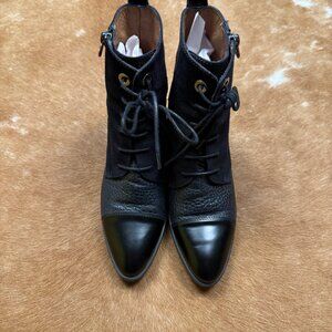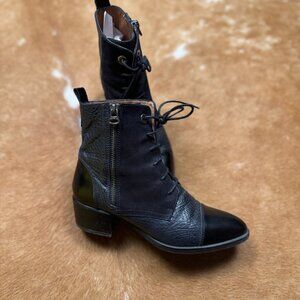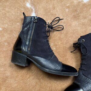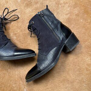 Hispanitas Black Leather Suede Lace Up Ankle Combat Boots Side Zip