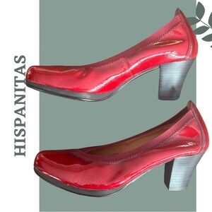 Hispanitas Red Leather Heel Pump Shoe Made in Spain Size 37 Size 6