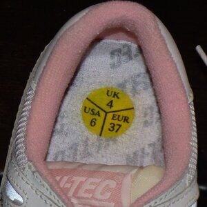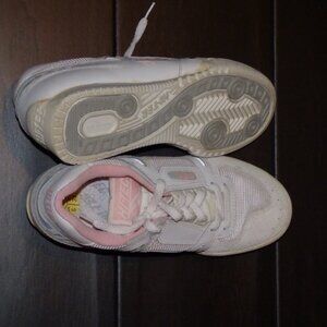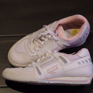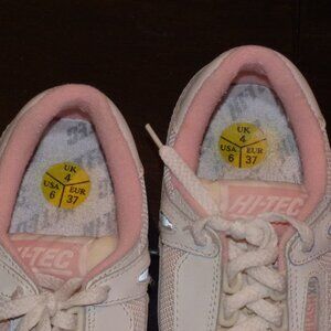 Unworn Hitec Squash Shoes / Sneakers in white with pink padded collar and detail. Size US 6