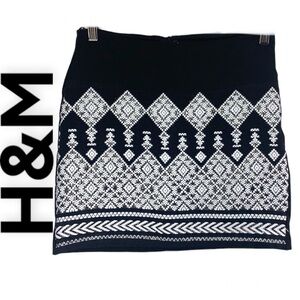H&m Black/White Aztec Short Woven Fabric Embroidered Straight Skirt Size S