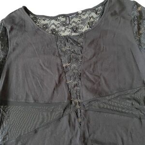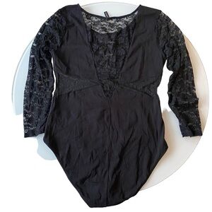 H&M Divided Lace & Sheer Long-Sleeve Bodysuit. Bodysuit with snap closure, lace long sleeves across the back and in the front V-neck. Sheer cut out on both sides. No noticeable wear or flaws. Size tag cut out.