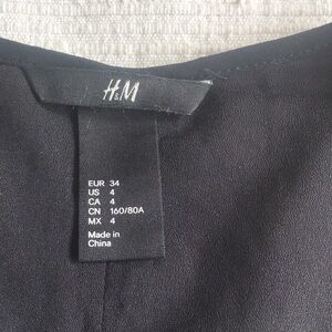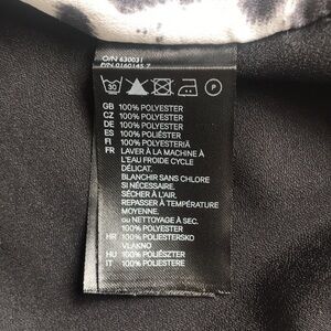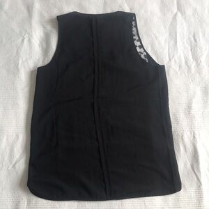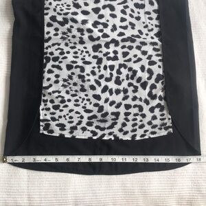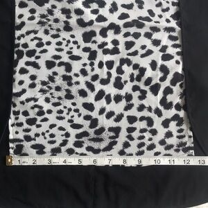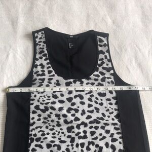 This lightweight H&M sleeveless blouse is in very good, pre-owned condition. 100% polyester. Scoop neck. The animal print portion is a light blue gray colour with black spots. Hi-low hem. Please see pics for all measurements.