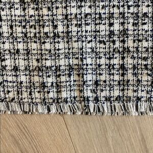 Super cute mini skirt from H&M size 6 , nice material and fringe detail on the hem. Zip closure at the back and looks like pocket detail at the front. Wear it with a pair of tall boots, heels, or simple flat shoes. Great back to school look, or back to work. Pre owned excellent condition no flaws.