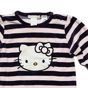 This adorable little shirt by H&M is soft velour with purple and pink stripes. Big cute Hello Kitty patch on the front, and two buttons at the neck for easy on and off. Get this adorable piece in your bundle with some onesies, jeans and kicks for the cutest closet discount! EUC.