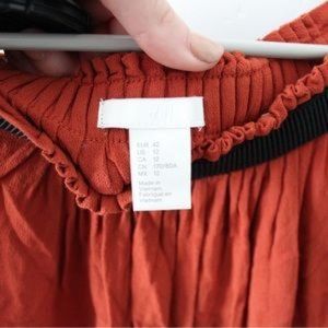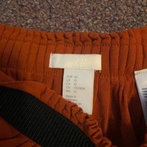 H&M Women’s High Waisted, Elastic Banded Skirt. Terracotta colored, with a black band around the waist. Incredibly comfortable for a business casual meeting, or on a summer trip to the farmer’s market!