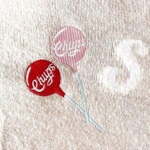H&M X Chupa Chups Limited edition collaboration Kidcore 90s kid style cardigan Beige with mint green accents Embroidered Chupa Chups candy on back & front pocket Oversized relaxed boxy fit Ribbed cuffs & trim Good condition *some allover pilling