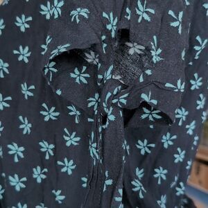 H&m black 🌴 print peplum top size S bow tie at sleeves