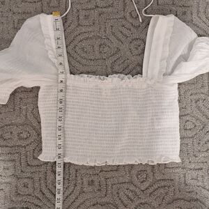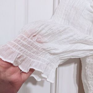 H&m puff sleeves smocked white peasant blouse Medium @K1