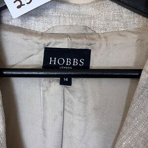 Hobbs 100% Linen Flax Blazer Jacket - Women's Size Beige - 14 UK