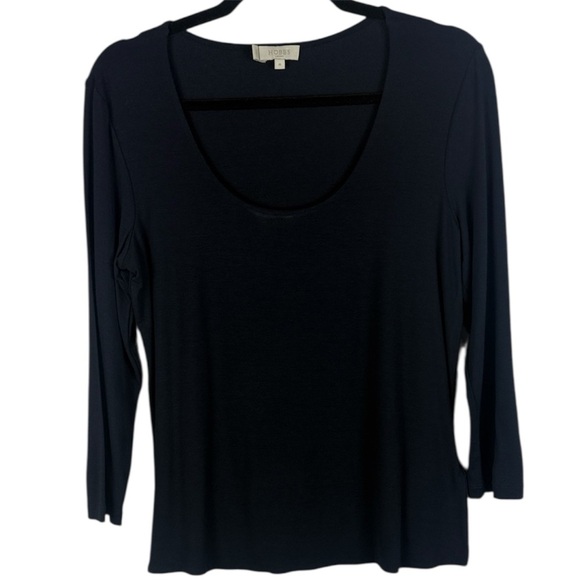 Hobbs London Elegant Navy 3/4 Sleeve Scoop Neckline Slim Fit Casual Med Blouse