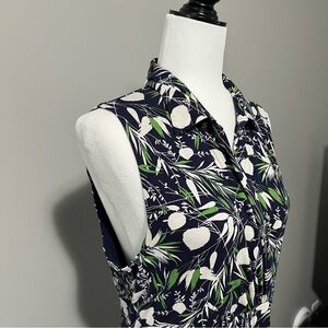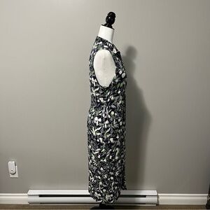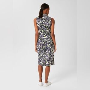 Hobbs London Nadia Sleeveless Jersey Dress Floral Leaf Navy Pattern