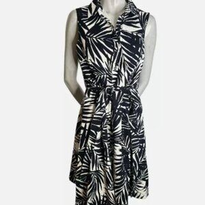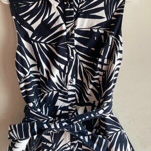 A sleeveless UK classic Hobbs dress, size 10. Can be worn with or without matching belt. Generous cut made with thick, quality cotton. Length 42" / 106.5 cm, Waist about 16.5 in/42 -42.5 cm, Pit to pit 19"/ 47.5-48.5 cm -would fit 36-38 b-c comfortably, Bottom fabric spread 38" / or about 97cm of twirl and swirl! (see pics) Unlined, covered button, belted. Excellent condition.