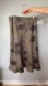 DESCRIPTION: A pretty demure midi skirt in a brown, white tweed knit with a rose design. Fully lined. Side zip. Has a wide base and a frayed hem. Has a beautiful fit and flow.