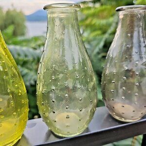 Hobnail Glass Bud Vases Set Of 3, MCM Vintage 5.50”