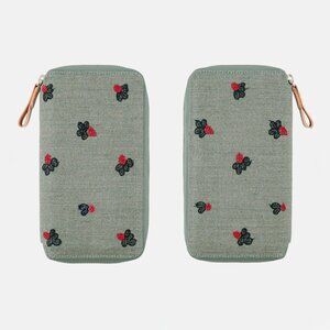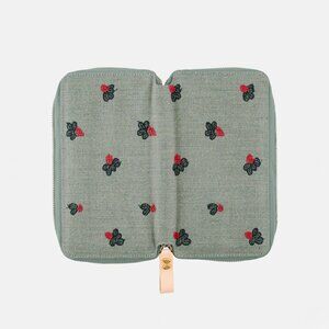 The material comes in green cotton linen with a gentle touch. It is embroidered with pretty berry embroidery in red and navy threads.