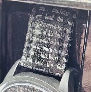 Sistas! You need this watch if you're a fan of this iconic movie. The watch face features the Sanderson sisters in cartoon format in front of the words to one of their classic spells on top of a black background. This spell is also featured on the black wristband as well. The absolute perfect collector's item!