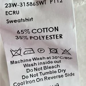 "Brand new hoodie available in sizes S-M, L-XL. Care instructions: Machine wash at 30°C, wash inside out, no bleach, avoid tumble drying, and cool iron on reverse. Four pieces in stock."
