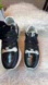 - low-top sneakers, shell, patent leather, multicolor, glittered, brand logo, leather lining, round toe, rubber cleated sole, contains non-textile parts of animal origin