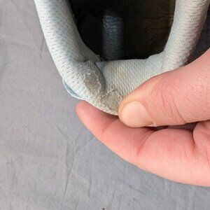 These sneakers have some staining on the fabric uppers. There are rub marks on the inner heels.
