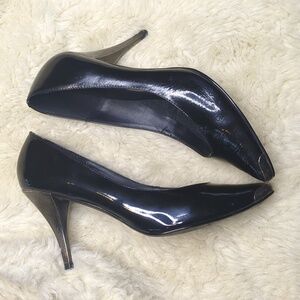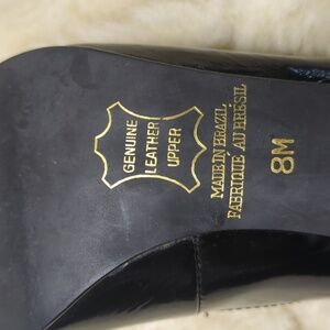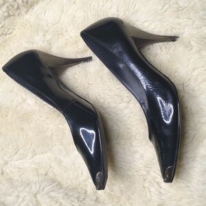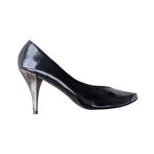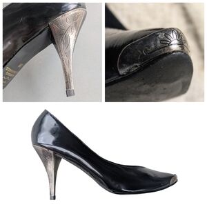 Hokus Pokus 80s Patent Leather Heels With Silver Accents Size 8 Black