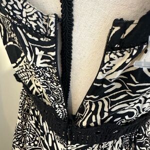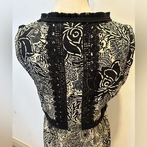 Holding Horses Anthropologie black and cream boho fringe dress midi summer SZ 6