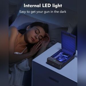 This is a biometric pistol safe, designed for quick access, portability, and safety. Ideal for responsible firearm owners who want secure storage at home or on the go.