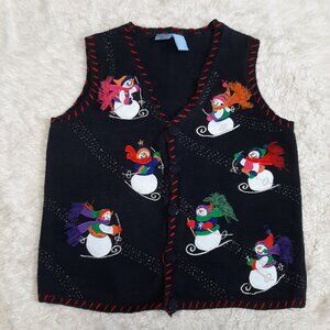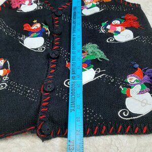 Holiday Editions Knit Vest Womens Button Snowman Winter Ugly Sweater Granny L