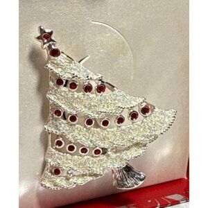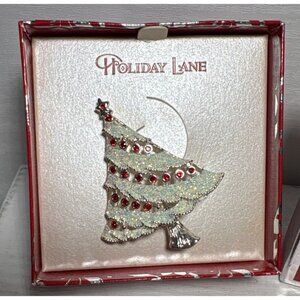 Holiday Lane Glittery Christmas Tree Brooch Pin With Red Accents Gift Box