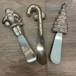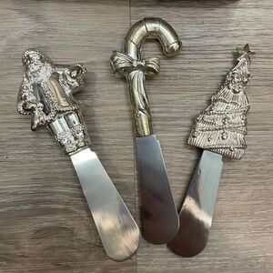 Picnic Plus Christmas Spreaders are made with stainless steel and have a festive Holiday theme. Set of three (3) includes a Santa Clause, Candy Cane and decorated Christmas Tree shaped handles. They make a beautiful presentation at your next holiday party for cheeses, dips and spreads. Makes a unique and thoughtful hostess gift. Hand wash only