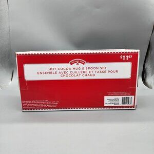 Holiday Time Hot Cocoa Mug & Spoon Set 2pc Red Ceramic Cups Christmas Gift