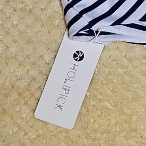 Holipick Women's Black and White Halter Front Tie Up Bikini Tops Size Medium