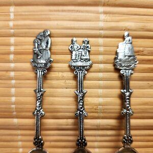 Holland Souvenir Spoons Set of 3 Man on Rum Barrel Man & Woman Ship Woman Workin