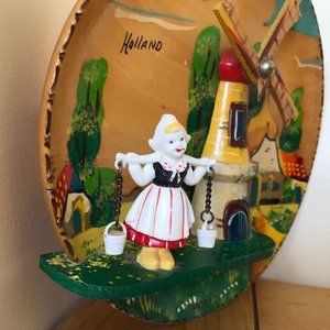 Holland Wooden 3D Wall Hanging Dutch Girl & Windmill 5152 DAMAGED Music Box