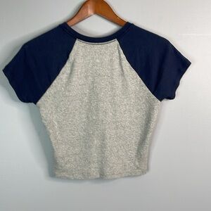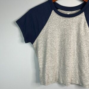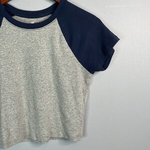 Hollister Baseball Short Raglan Sleeve Crop T-Shirt Navy Grey Baby Tee Size M